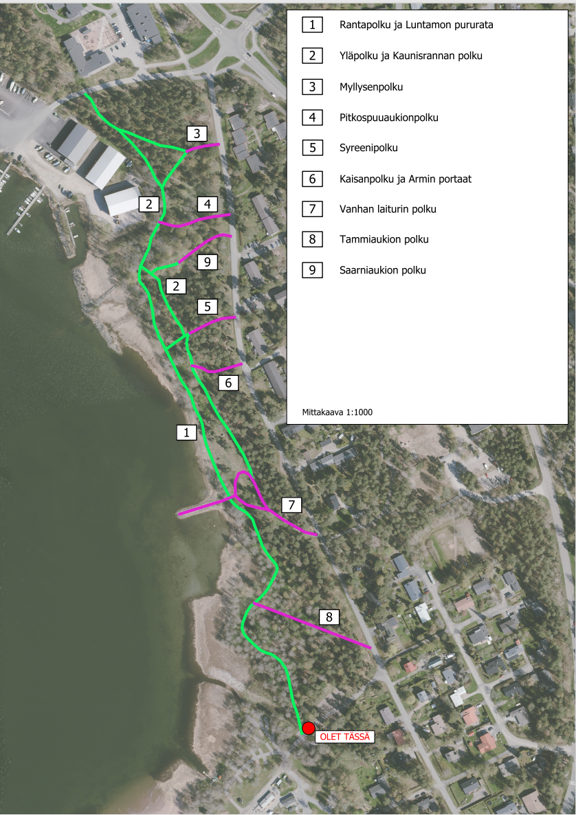 Kaunisranta on nykyään kaikille avoin rantapolkuverkosto levähdyspenkkeineen.