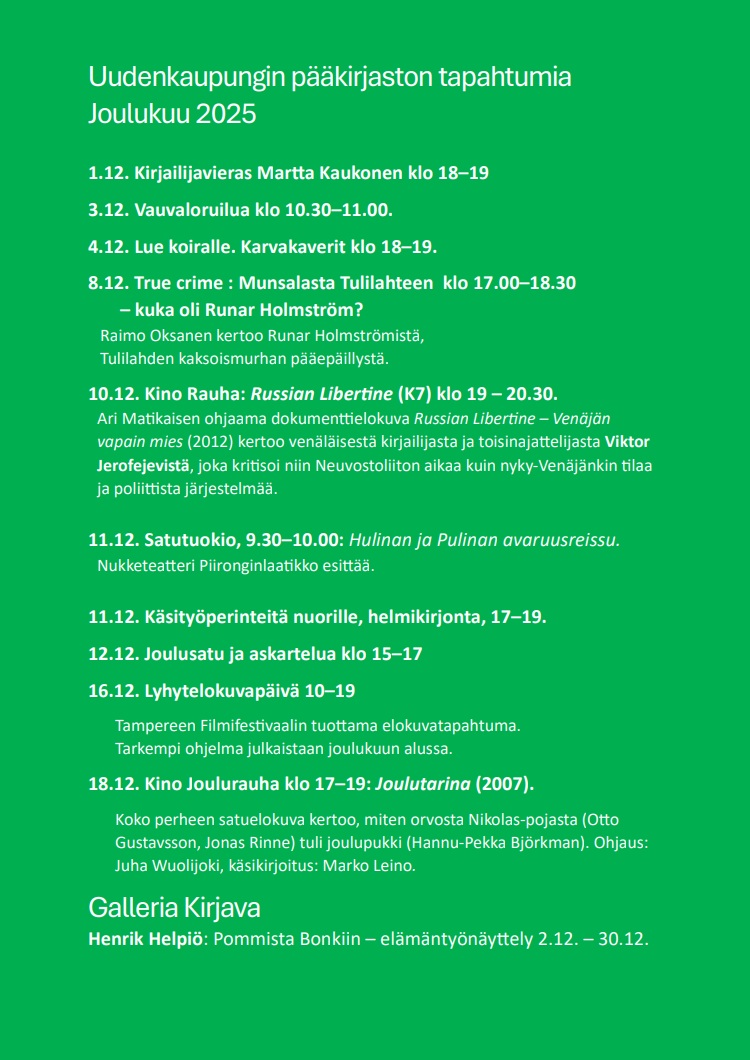 Pääkirjaston tapahtumalistaus joulukuu 2025